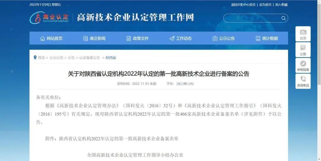近日,從科技部火炬中心高新技術(shù)企業(yè)管理認(rèn)定工作網(wǎng)獲悉,在陜西省2022年第一批高新技術(shù)企業(yè)認(rèn)定單位中,安康陜變榮獲“國家高新技術(shù)企業(yè)”備案認(rèn)定,目前正在公示!